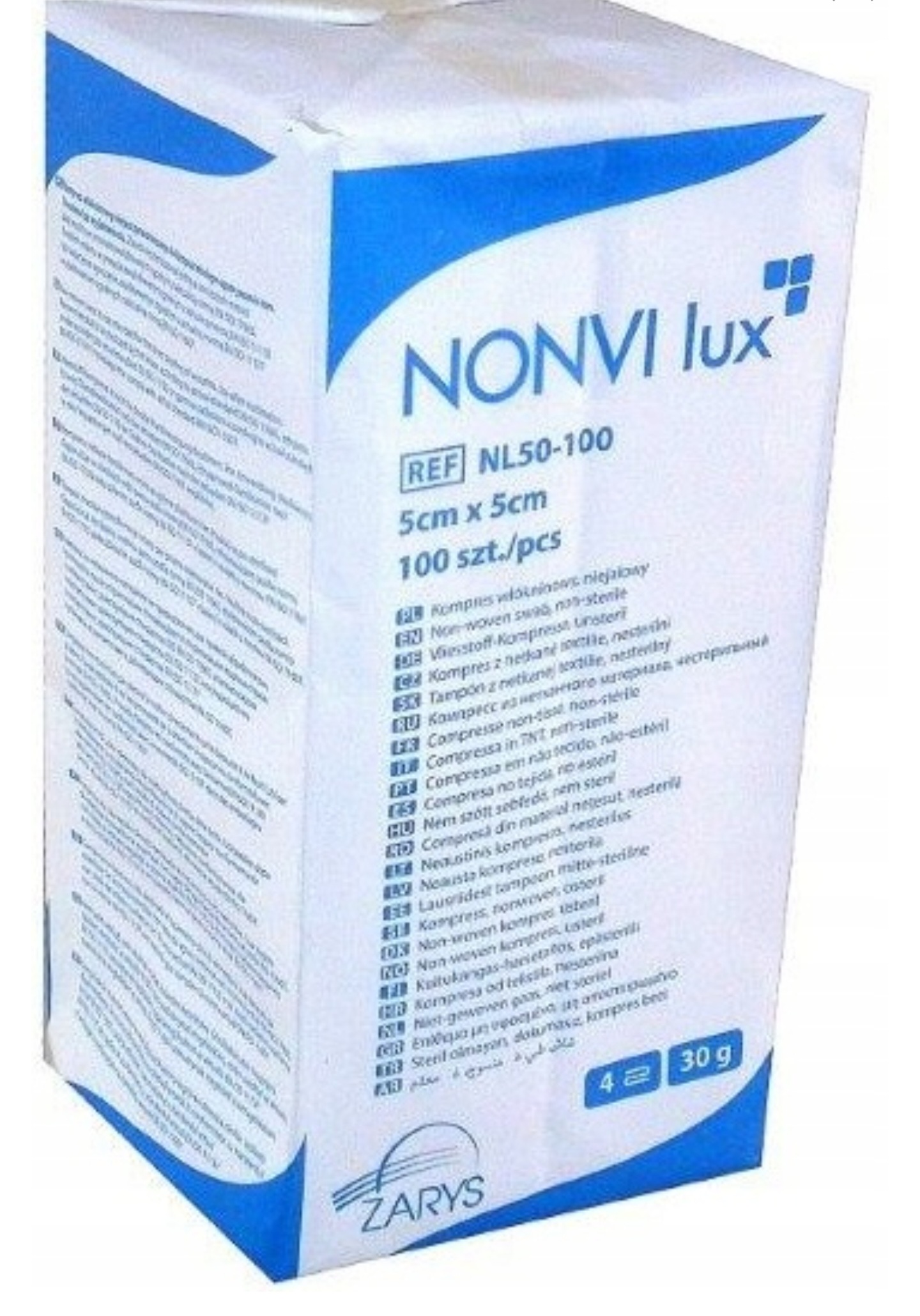 - wykonany z hydrofilowej włókniny medycznej o gramaturze 30g